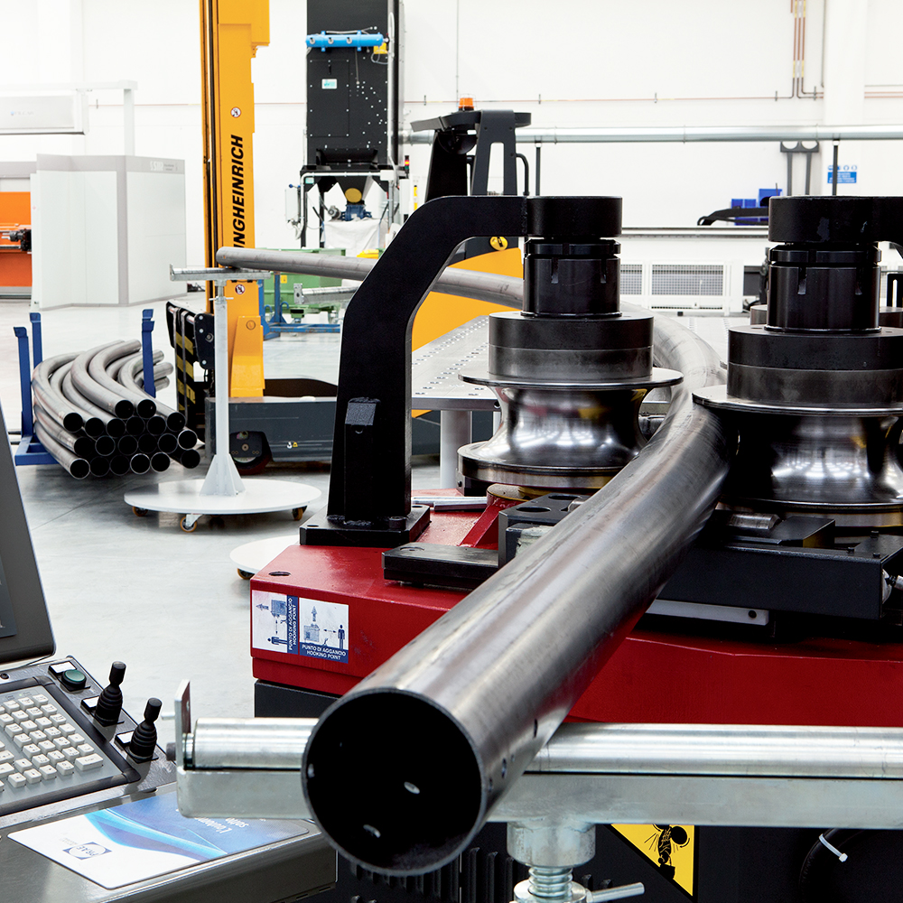 En horisontal presse muliggjør deformasjonsprosessen av røret og koniskforming av de ulike seksjonene til forskjellige diameter. Å lage en konisk stolpe med høy estetisk effekt gjør forskjellen i urbane installasjoner.