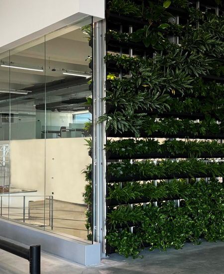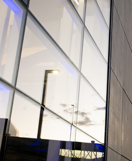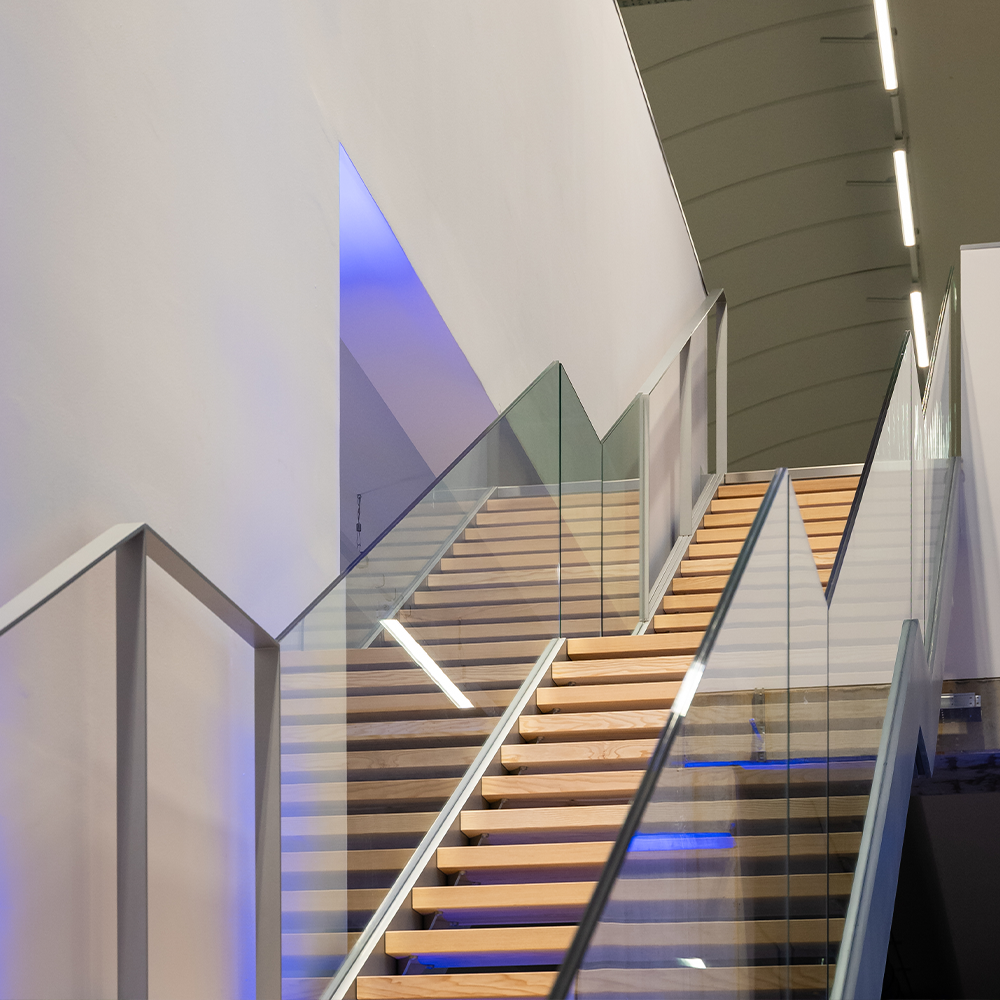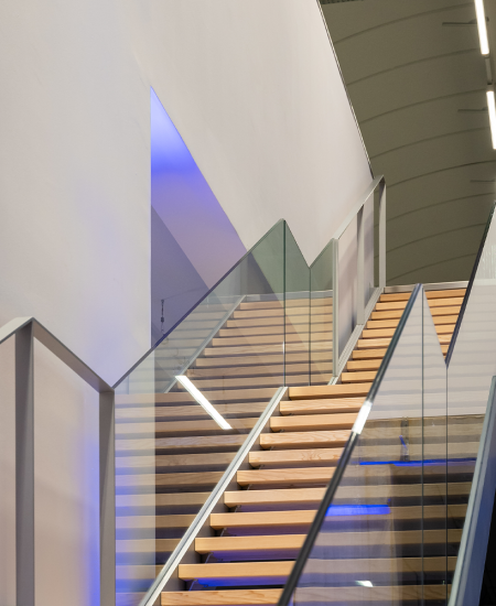 Arkitekturen i anlegget kjennetegnes av gjennomtenkte innvendige og utvendige arealer med innovativ utendørs belysning, som sikrer et stimulerende og moderne arbeidsmiljø. Store vinduer og lyse rom fremmer åpenhet og samspill, noe som underbygger AECs forpliktelse til en bærekraftig arbeidsplass som er godt integrert i det omkringliggende landskapet.