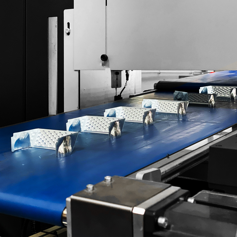 «Servo»-teknologien gjør det mulig å stille inn høyde-, trykk- og hastighetsparametere med hundredels presisjon og overvåke produksjonskvaliteten. Aluminiumstrimmelen, som lagres på coil, mates inn fra pressens innlastingsside, føres gjennom hele formen av materen og blir formet til sluttproduktet.