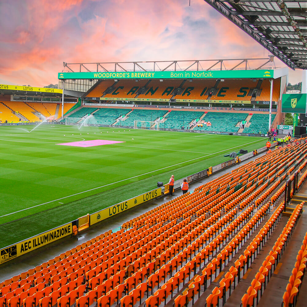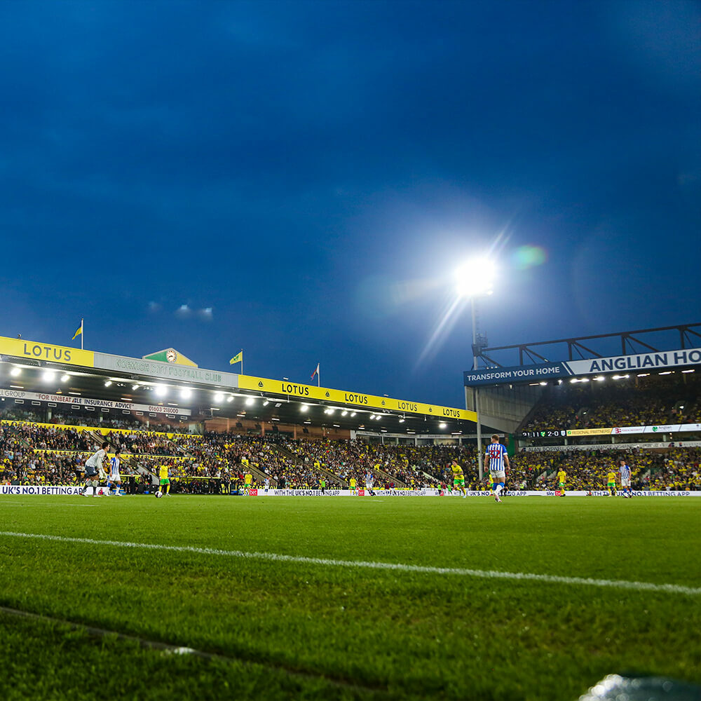 The sun makes it shine during the day, we make it shine at night. Our 222 LED floodlights light up Carrow Road with plays of light for a guaranteed show.