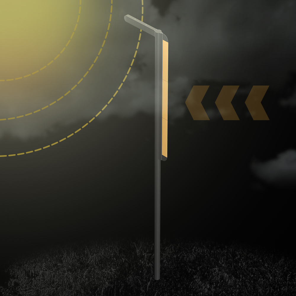 DRAGON SOLAR er tilgjengelig med 3 eller 4 solcellepaneler og kan installeres på stolper med høyde på 8 eller 9 meter.