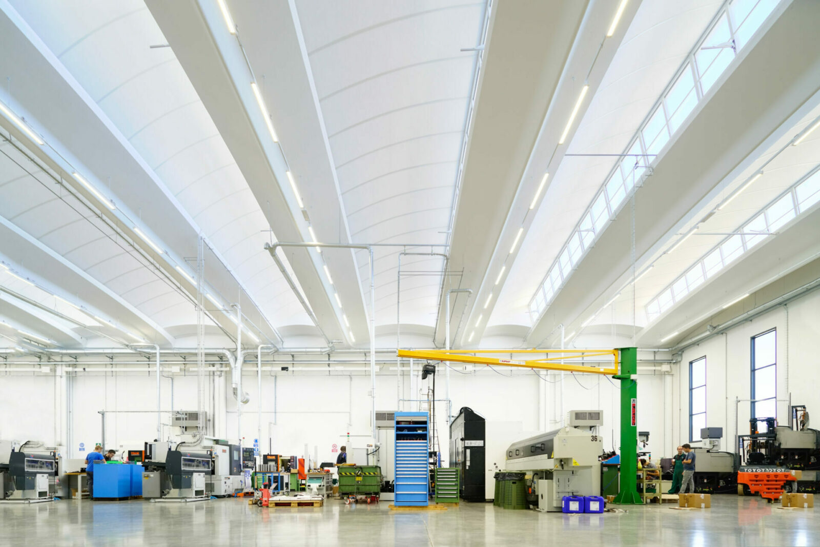 Industrielle interiører har ofte smale korridorer og trange passasjer. Tilstrekkelig LED-belysning øker sikkerheten ved å redusere risikoen for ulykker og skader. Videre sikrer valg av LED-armaturer med optiske systemer spesielt designet for visuell komfort som sikrer arbeidernes velvære og konsentrasjon.