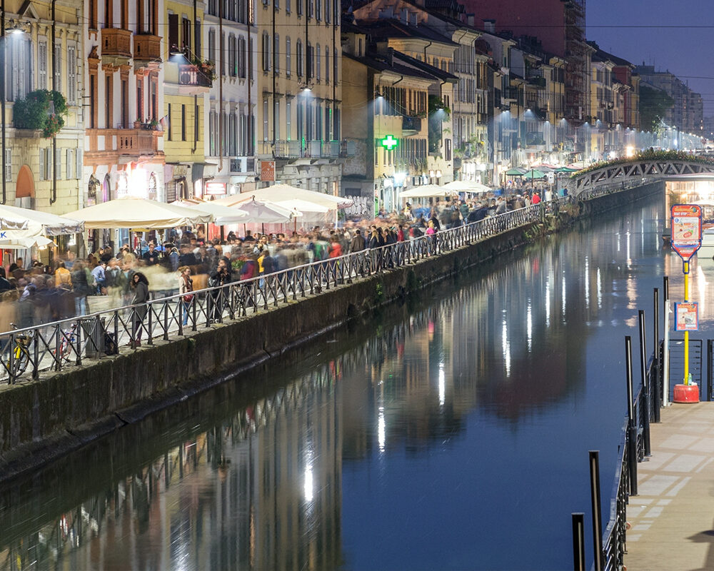 Takket være AECs LED-løsninger for offentlig belysning kan innbyggerne trygt utforske byens nabolag også om natten. Områder med høyt trafikkvolum av historisk og kulturell verdi, som Navigli, får nytt liv under et nytt effektivt LED-lys med høy visuell komfort skapt med ITALO 2 Urban TS.