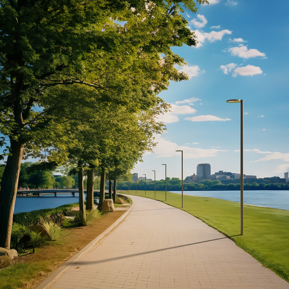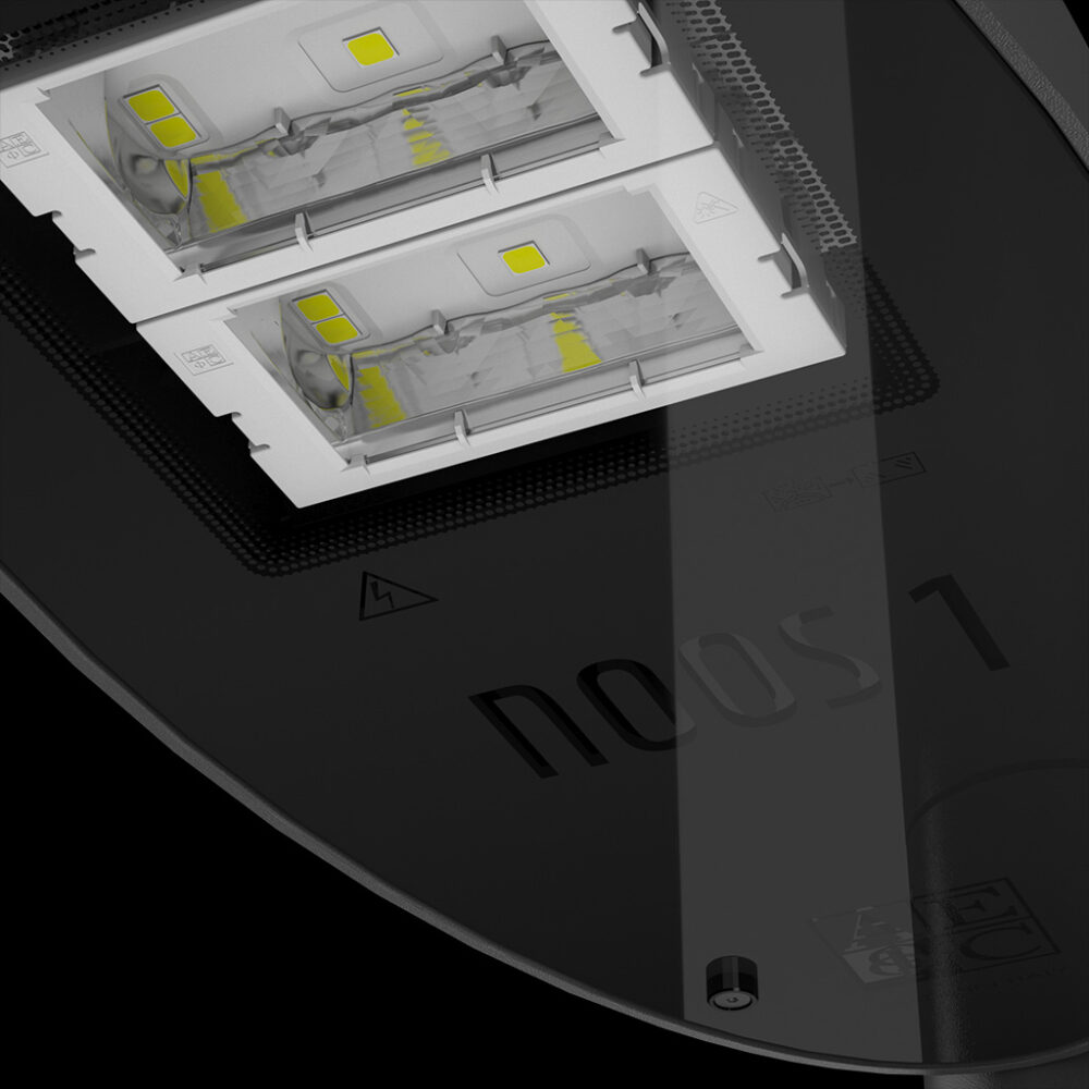 Introduksjon av NOOS, en ny serie utviklet for å redefinere urbane områder\nmed effektivitet, estetikk og bærekraft.\nNOOS-armatur representerer en utvikling innen bybelysning,\nsom kombinerer energieffektivitet med et minimalistisk og elegant design.