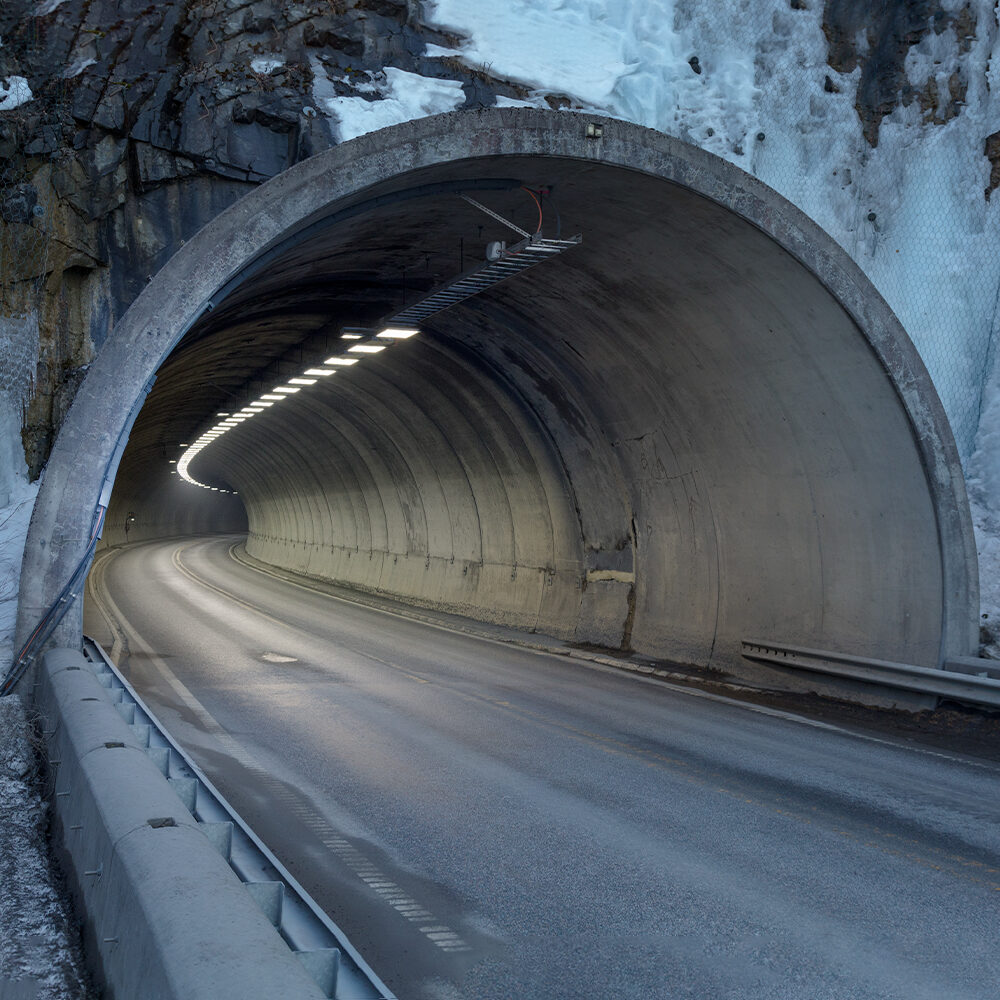 Oppdag fordelene som T-LED3 tunnelflomlys garanterer i den norske tunnelen i Skaun.