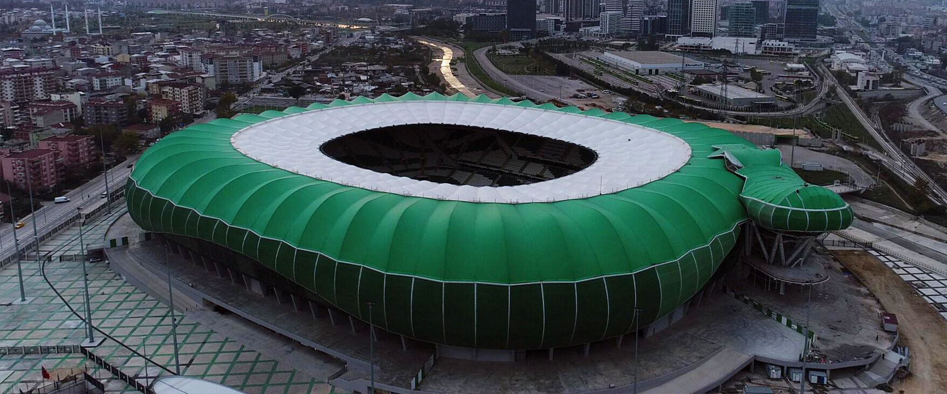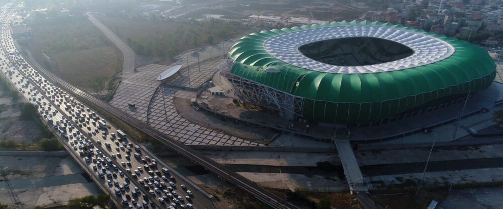 LED-belysning av Timsah Arenas utendørsområde: AEC Illuminazione ble valgt for LED-belysning av Timsah Arenas utendørsområde ved Timsah Arena i Tyrkia. Den imponerende strukturen ligger i byen Bursa og har 45 000 seter og en spilleflate på over 100 meter, viktige dimensjoner som også oppfyller regelverket for SüperLig. Timsah Arena har en tydelig krokodilleform, ettersom reptilet er symbolet til Bursaspor-klubben, som er hjemmelaget. Prosjektet, som ble innviet i 2015, kostet over 35 millioner euro og er en del av ytterligere 21 nye stadioner bygget av regjeringen.