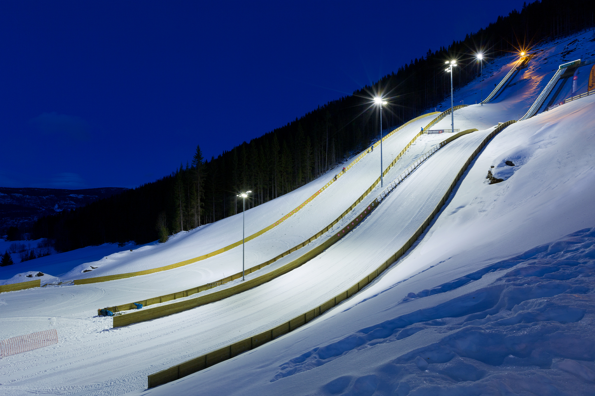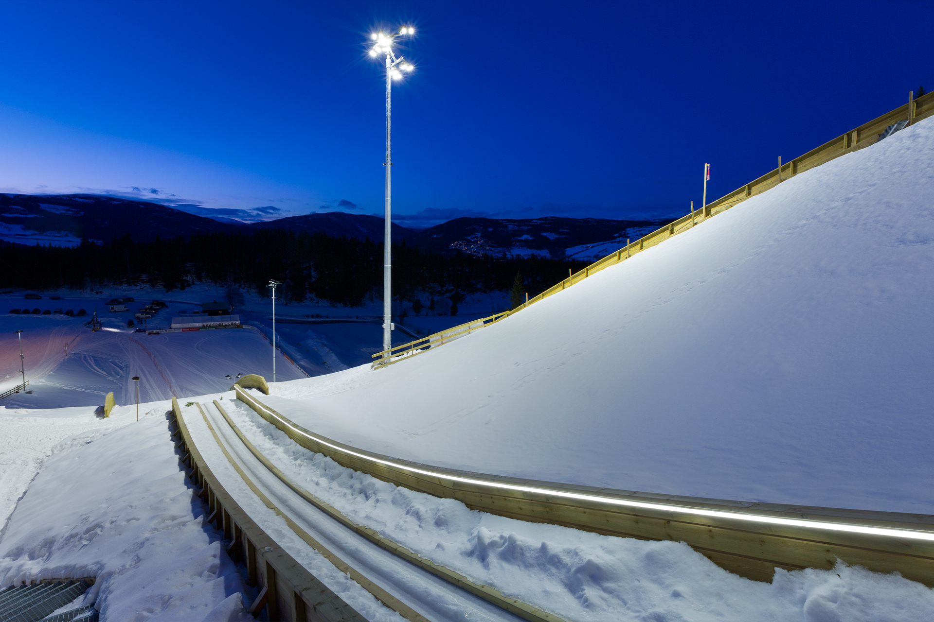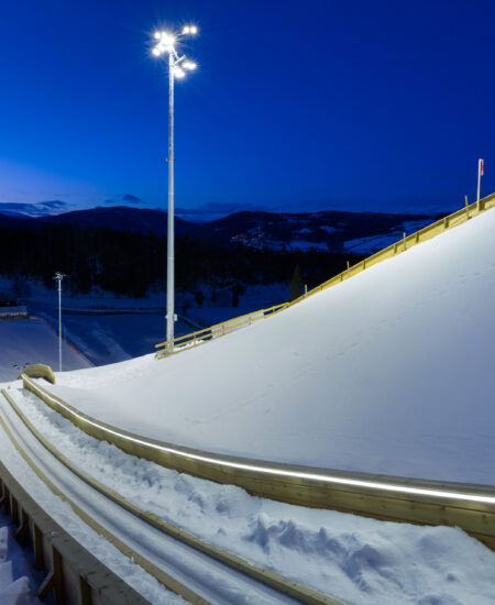Skibakkebelysning: LED utendørs belysning ved Lysgårdsbakkene, en skihopparena i Lillehammer, Norge. Den åpnet i 1993 for Vinter-OL 1994, hvor den var arena for skihopping og kombinert, samt åpnings- og avslutningsseremoniene. Gitt strukturens betydning ønsket kommunen å fornye idrettsanlegget med LED-flombelysning for skibakker designet av AEC Illuminazione, en garanti for pålitelighet, høy ytelse og energibesparelser.