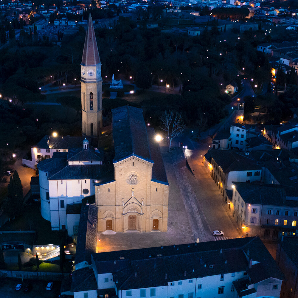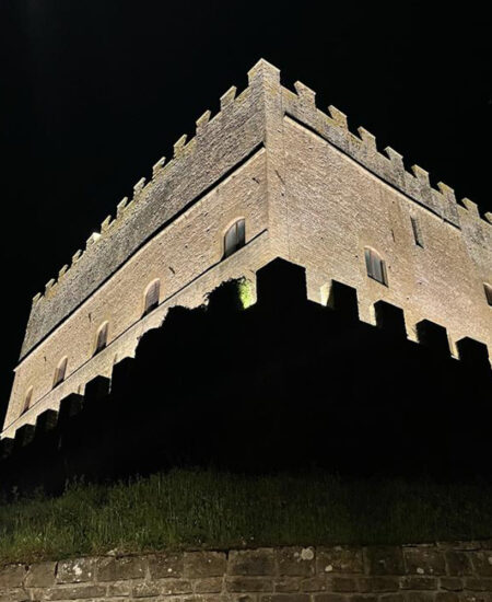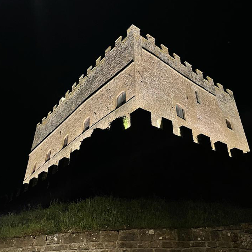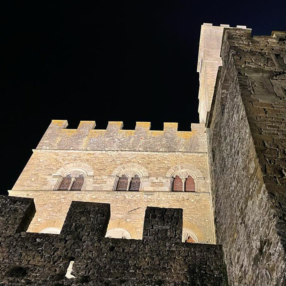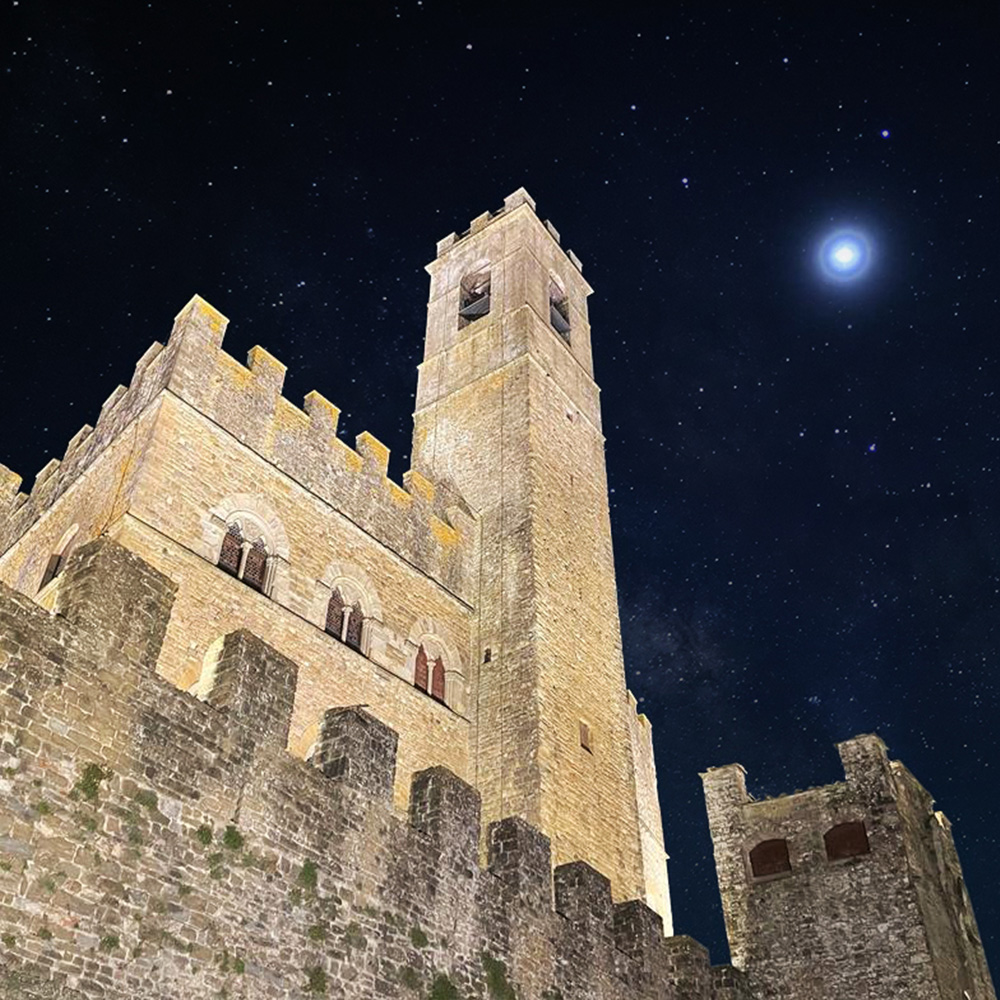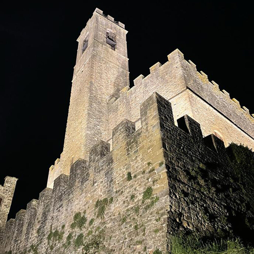 AEC Illuminazione ble valgt for LED-oppgraderingen av Grevene Guidis slott, i dag Palazzo Pretorio i Poppi, i Toscana i Casentino-området. Det middelalderske slottet ble bygget mellom slutten av 1100-tallet og begynnelsen av 1300-tallet av den adelige Guidi-familien, og er det «yngste» slottet blant alle dem som denne mektige familien bygde i området rundt Arezzo. Slottets opprinnelige kjerne består av det 45 meter høye kvadratiske tårnet, som fortsatt dominerer resten av bygningen og hele dalen. Dagens utseende er imidlertid ikke det opprinnelige; på 1800-tallet ble tårnet nemlig omgjort til et klokketårn under restaureringsarbeidene.