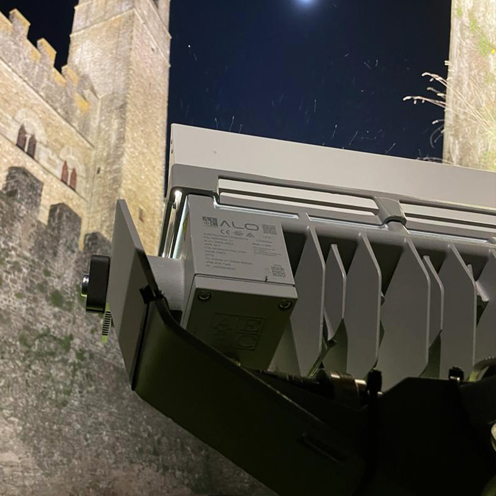 Sammenlignet med den tidligere belysningen gjør de nye LED-projektørene at slottet er perfekt synlig selv flere kilometer unna, og uttrykker fullt ut sin majestet fra alle vinkler. Grevene Guidis slott er nemlig det arkitektoniske ikonet til kommunen Poppi, og med den nye LED-belysningen har AEC fullt ut nådd prosjektets mål: å fremheve formene og samtidig sikre perfekt jevn belysning på hver fasade.