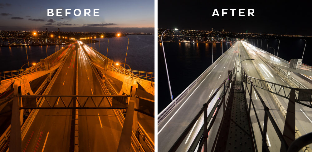 Belysningen av Auckland-broen har sikret energieffektivitet og økt sikkerhet med veibelysning med høy visuell komfort.