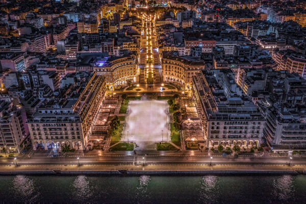 Oppdag LED-belysningsprosjektet for Aristotelous-plassen, hovedbyområdet i Thessaloniki i Hellas.