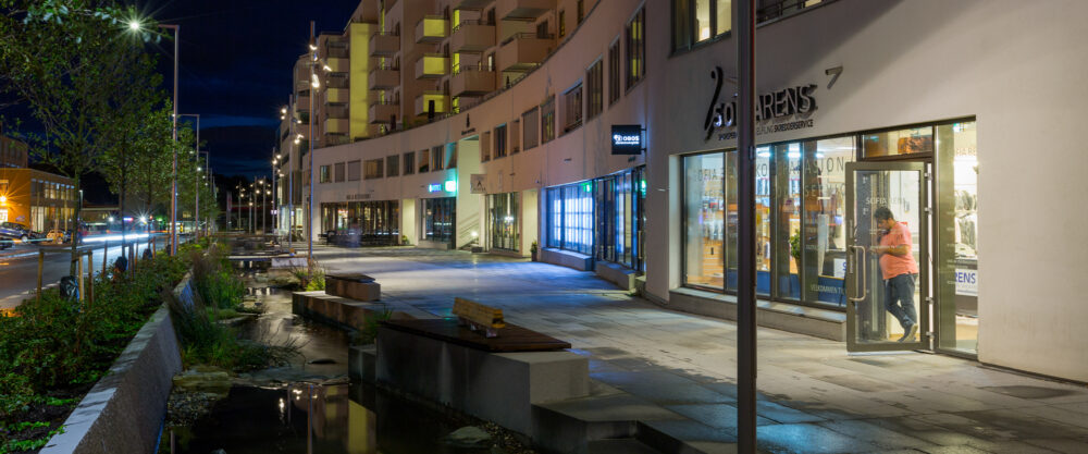 Oppdag det nye prosjektet for offentlig belysning i Ringsaker-området, et nytt urbant område nær Mjøstårnet.